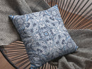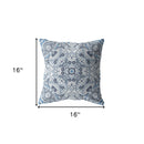 16” Light Blue Boho Ornate Zippered Suede Throw Pillow