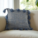 - 18" Royal Blue Polyester Blend Throw Pillow With Tassels