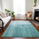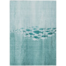- 3' X 5' Teal Blue Aqua And Ivory Nautical Washable Indoor Outdoor Area Rug
