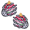 Who says holiday cheer has to be sweet? These skeleton hands add a bold twist to your Christmas outfit, holding sparkling ornaments that bring a playful, eye-catching vibe to any seasonal party.