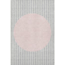 Add some artistry to your room with this 5-foot x 8-foot silver ivory and pink striped washable area rug with uv protection. Ideal for spaces with kids and pets, this...