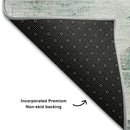 This 5-foot x 8-foot teal gray and ivory abstract washable area rug with uv protection, is a great way to add warmth to a room. Ideal for spaces with kids...