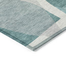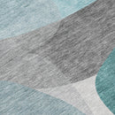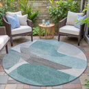 - 8' Teal Blue And Gray Round Abstract Washable Indoor Outdoor Area Rug