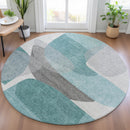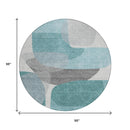 8' Teal Blue And Gray Round Abstract Washable Indoor Outdoor Area Rug