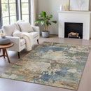 - 8' X 10' Blue Green And Beige Abstract Washable Indoor Outdoor Area Rug
