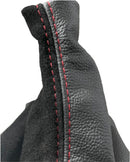 Black Leather & Suede Shift Boot Cover In Red Stitch For Ford Mustang GT 2005 2006 2007 2008 2009