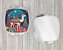Compact Mirror featuring breed specific Camel artwork. Celebrate Christmas with this Christmas Compact Mirror. Introducing our Square Compact Mirror, a blend of elegance, functionality, and compactness, perfect for on-the-go touch-ups. This Silvertone metal mirror, with dimensions of 2.75 inches x 3 inches x .3 inches, fits effortlessly into your purse, handbag, or pocket, ensuring that you can check your appearance anytime, anywhere. Our compact mirror stands out with its eye-catching artwork on the front, adding a dash of style to this practical accessory. It is more than just a mirror; it's a statement piece that reflects your personality and aesthetic. When opened, this compact reveals two mirrors inside, doubling your perspective for precise touch-ups. The Silvertone metal construction ensures durability while maintaining a lightweight feel, making it an ideal everyday carry item. Whether you're rushing to a meeting, prepping for a dinner date, or just need a quick check on your look, our Square Compact Mirror is your reliable companion. Experience the perfect blend of style and practicality with this must-have accessory.