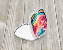 Compact Mirror featuring breed specific Cherry Blossoms artwork. Introducing our Square Compact Mirror, a blend of elegance, functionality, and compactness, perfect for on-the-go touch-ups. This Silvertone metal mirror, with dimensions of 2.75 inches x 3 inches x .3 inches, fits effortlessly into your purse, handbag, or pocket, ensuring that you can check your appearance anytime, anywhere. Our compact mirror stands out with its eye-catching artwork on the front, adding a dash of style to this practical accessory. It is more than just a mirror; it's a statement piece that reflects your personality and aesthetic. When opened, this compact reveals two mirrors inside, doubling your perspective for precise touch-ups. The Silvertone metal construction ensures durability while maintaining a lightweight feel, making it an ideal everyday carry item. Whether you're rushing to a meeting, prepping for a dinner date, or just need a quick check on your look, our Square Compact Mirror is your reliable companion. Experience the perfect blend of style and practicality with this must-have accessory.