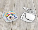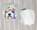 Compact Mirror featuring breed specific Old English Sheepdog artwork. Introducing our Square Compact Mirror, a blend of elegance, functionality, and compactness, perfect for on-the-go touch-ups. This Silvertone metal mirror, with dimensions of 2.75 inches x 3 inches x .3 inches, fits effortlessly into your purse, handbag, or pocket, ensuring that you can check your appearance anytime, anywhere. Our compact mirror stands out with its eye-catching artwork on the front, adding a dash of style to this practical accessory. It is more than just a mirror; it's a statement piece that reflects your personality and aesthetic. When opened, this compact reveals two mirrors inside, doubling your perspective for precise touch-ups. The Silvertone metal construction ensures durability while maintaining a lightweight feel, making it an ideal everyday carry item. Whether you're rushing to a meeting, prepping for a dinner date, or just need a quick check on your look, our Square Compact Mirror is your reliable companion. Experience the perfect blend of style and practicality with this must-have accessory.