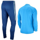 FC Barcelona, official presentation soccer tracksuit for 2019 winter/spring games in La Liga. This stylish design by Nike features light blue jacket and royal pants. Wear with pride the Barça style, support the catalan club everywhere you go!