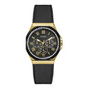 Guess Glaze GW0753L4 Montre Femmes Multifonctionnel Boîtier en acier inoxydable, revêtement de couleur or et noir, polies Bracelet en cuir, noir, boucle ardillon Mouvement à quartz, fonctionnant sur batterie Affichage...