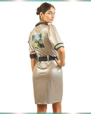The back of the dress features the striking artwork 'Awareness,' infusing this classic Safari-inspired garment with deep meaning and a powerful statement.