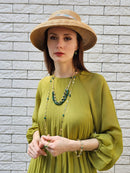 The long design allows for versatile styling—wear it alone for a chic statement or layer it with other necklaces for a trendy look. Malachite is not only admired for its vibrant green hues but is also known for its protective and healing properties, making this necklace both stylish and meaningful.