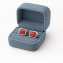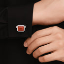 Refined and bold, these 925 sterling silver cufflinks feature rectangular cabochon red coral stones framed by a delicately engraved bezel. The textured edges highlight the coral’s warm tone, adding a touch of sophistication and individuality to any formal ensemble.