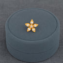 This five-petal floral nose pin in 925 sterling silver is gracefully gold-plated and adorned with shimmering white CZ stones. Designed in a star-shaped blossom motif, each petal glistens with tiny pavé-set accents, centered around a larger CZ for added brilliance. A timeless choice for weddings, festive looks, or daily wear.