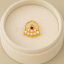 Crafted from pure 925 sterling silver and finished in rich gold plating, this nose pin features a traditional dome-style cluster of sparkling white CZ stones, highlighted by a single vibrant pink CZ at the center. The dotted frame adds a handcrafted feel, making it a timeless piece for ethnic styling.