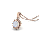 0.75 Ct Moonstone Round Beaded Halo Necklace – 14K Yellow Gold