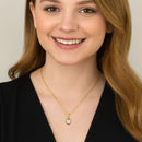 This necklace features a glowing 6x6 mm round-cut moonstone (0.75 carat) set in solid 14K yellow gold. Surrounded by a delicate beaded halo frame, the moonstone’s soft sheen radiates a timeless appeal. Suspended from a fine gold chain, this necklace adds a touch of ethereal beauty to any look, perfect for layering or as a standalone statement piece.