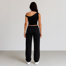 A modern essential with a sleek edge. This one-shoulder tank is crafted from a premium cotton/spandex blend that offers the perfect balance of softness, stretch, and structure. Designed with a formfitting fit. The asymmetrical neckline adds a contemporary touch, while the flexible hemline allows for styling versatility - it can be scrunched up for a cropped look or pulled down to be full length.