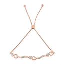 - .925 Sterling Silver 1/10 Cttw Diamond Wave and Hearts 4”-10” Adjustable Bolo Bracelet (I-J Color, I3 Clarity)
