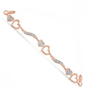.925 Sterling Silver 1/10 Cttw Diamond Wave and Hearts 4”-10” Adjustab