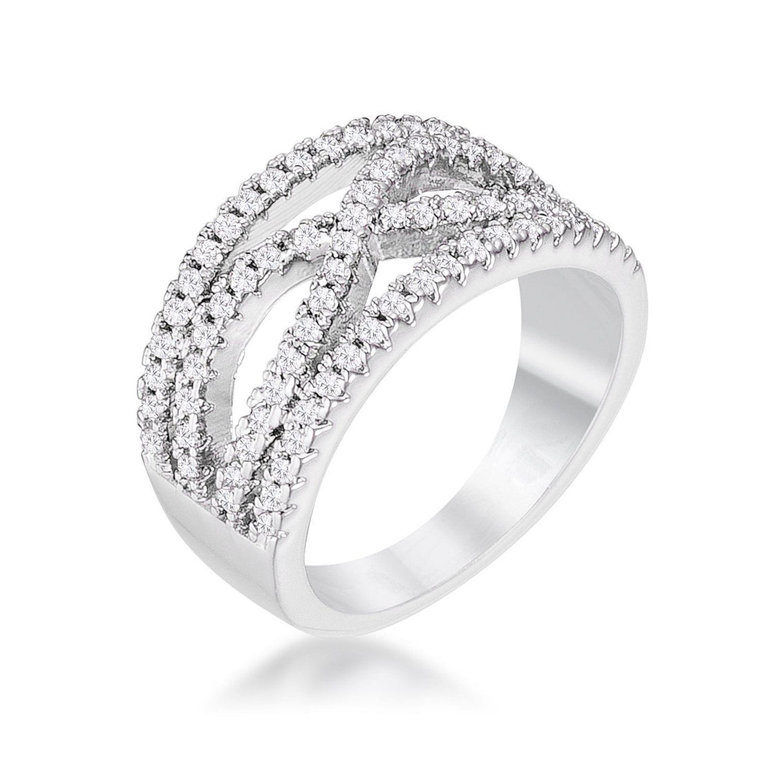 .4Ct Rhodium Plated Classic Twist Wide CZ Ring