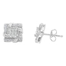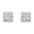 Discover the sheer elegance and timeless charm encapsulated in these sparkling stud earrings, expertly crafted from high-quality .925 sterling silver. At their heart lies a mesmerizing cluster of round-cut diamonds, totaling 1/2 carat, with each gemstone boasting a natural origin and shimmering with an I-J color and I1-I2 clarity. This lustrous core is ingeniously framed by a halo of intricately arranged smaller diamonds, creating a sophisticated woven texture that catches the light with every turn. The earrings' square silhouette enhances their contemporary appeal while maintaining an air of classic sophistication. Designed with push-back closures, they promise both comfort and security. Perfect for elevating everyday attire or adding a touch of glamour to evening wear, these earrings embody luxury and craftsmanship, making them an essential addition to any jewelry collection.