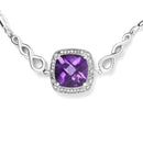.925 Sterling Silver 10mm Cushion Cut Amethyst Gemstone and Diamond Accent Lariat 4”-10” Adjustable Bolo Bracelet (H-I Color, SI1-SI2 Clarity)