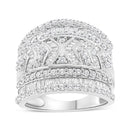 .925 Sterling Silver 2.0 Cttw Diamond Edge Multi-Row Ring Band ( J-K C