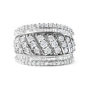 .925 Sterling Silver 2.00 Cttw Diamond Fashion Multi Row Cocktail Ring (H-I Color, I2-I3 Clarity)