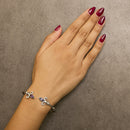 Grace your wrist with the regal elegance of this rhodium-plated .925 sterling silver cuff, where every glance catches the light and sparks conversation. Crafted to form the classic Fleur De Lis, each end of this open bangle is crowned with a marquise-cut purple amethyst, naturally sourced and untreated to showcase its vivid hues unequivocally. These gemstones, symbolizing nobility, are framed by natural diamonds that whisper tales of subtle opulence with every flicker. Designed to embrace wrists up to 7 inches, this piece intertwines the enduring luster of sterling silver with the timeless luxury of amethyst and diamond, offering a piece not only of jewelry but of artistry and sophistication. Whether it's an evening draped in silk or a day crowned with the simplicity of satin, this cuff promises to be your companion.