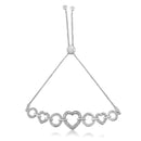 .925 Sterling Silver Diamond Accent Interlinking Triple Heart 4”-10” Adjustable Bolo Tennis Bracelet Bolo Bracelet (H-I Color, I2-I3 Clarity)