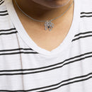 Celebrate your affection for the charming and affable pug with this exquisite .925 sterling silver pendant necklace, rhodium-plated to ensure an enduring sparkle and resistance against tarnishing. The pendant, a masterpiece of craftsmanship, captures the whimsical essence of a pug's face with intricate openwork that brings each feature to life. Its captivating eyes twinkle with natural white diamonds of I-J color and I2-I3 clarity, ensuring a subtle yet enchanting glimmer that mirrors the warmth of this beloved breed. A playful touch of black enamel defines the nose, enhancing the expressive character of the piece. Suspended from a sleek 18-inch box chain and secured with a sturdy spring ring clasp, this necklace promises to be a versatile and cherished addition to any jewelry collection.