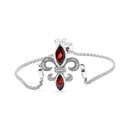 .925 Sterling Silver Marquise Garnet and Diamond Accent Lariat 4”-10” Fleur De Lis Adjustable Bolo Bracelet (H-I Color, SI1-SI2 Clarity)