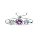 .925 Sterling Silver Oval Amethyst and Pear Blue Topaz with Diamond Accent Lariat 4”-10” Adjustable Bolo Bracelet (H-I Color, SI1-SI2 Clarity)