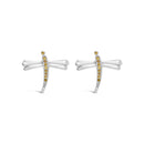 .925 Sterling Silver Yellow Diamond Accent Dragonfly Stud Earrings (Yellow Color, I2-I3 Clarity)