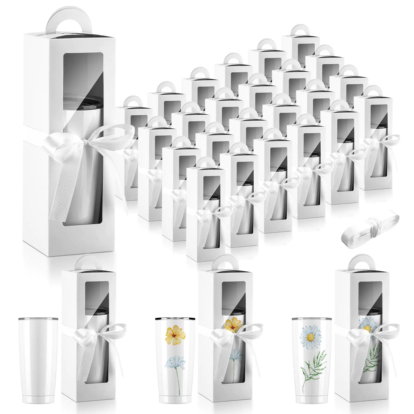 Ctosree 24 Pcs Tumbler Gift Box with Handle for 12oz 16oz 20oz 30oz wine glass gift box Sublimation Tumblers Heat Press Blanks Bottle clear Gift Box for Wrapping Packaging(White)