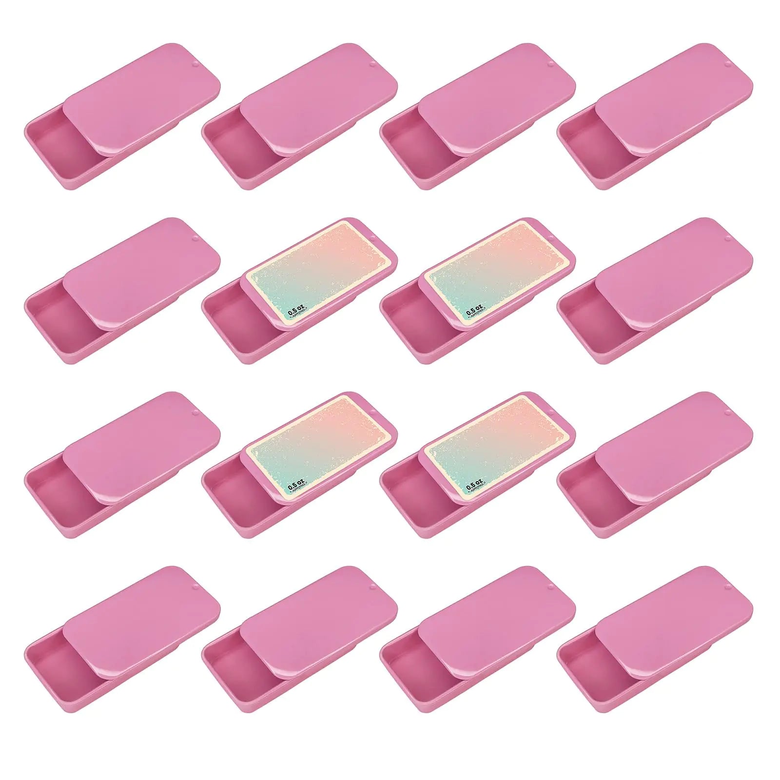 Cubic Ape Slide Top Tin Containers for Lip Balm Solid Perfume (0.5 oz 16-Pack w/Labels) - (Small) Empty Cosmetics Metal Boxes with Sliding Lids (Gloss Pink)