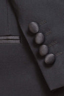 COMPANION PANTS: The pants that were designed to go with this "Edge" jacket is the "Logan" Black Tuxedo Pants, featuring an updated 1/8" narrow satin stripe going down the outer side of each leg. If you do not prefer the side stripe detail, you could opt for the "Bradley" Black Tuxedo Pants. Either of these pants are crafted using the same luxurious wool blend.