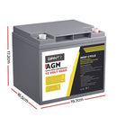 Need portable power? Our Giantz Deep Cycle Battery provides off-the-grid power supply for 4WD vehicles, caravans, campers, trailers, motorhomes, saltwater/marine applications, and all 12V appliances including portable fridges and washers. With better low-temperature performance, the battery will perform perfectly in various environments. The battery features an industry-leading build life of up to 1400 cycles, making it one of the most enduring in its class. What you get is a longer, consistent and more drawn-out charge all the time. With its advanced AGM technology, the battery enables better electrolyte absorption, cyclic stability and frequent charging without affecting performance. The bolt-down terminals also allow for a more reliable experience, and the high oxygen-recombination efficiency results in superior deep discharge recovery. The maintenance-free deep cycle battery is completely sealed, spill-resistant and does not leak for added safety and durable use. With a convenient carry handle, portability is ensured. When you need power on the road, you need a Giantz Deep Cycle Battery.