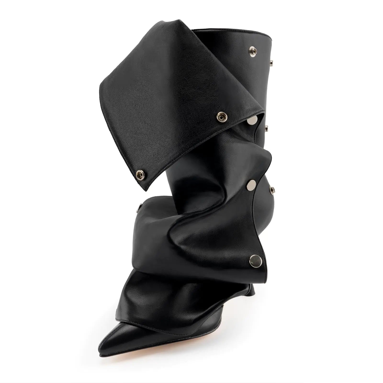 [Almond toe Stitching details Stacked chunky heel Oversized side pull tabs Soft synthetic lycra lining Easy on/off slip-on design Animal-friendly faux leather uppers]