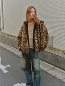 "Leopard Fantasy" Leopard Spot Print Reversible Drop Shoulder Hooded C