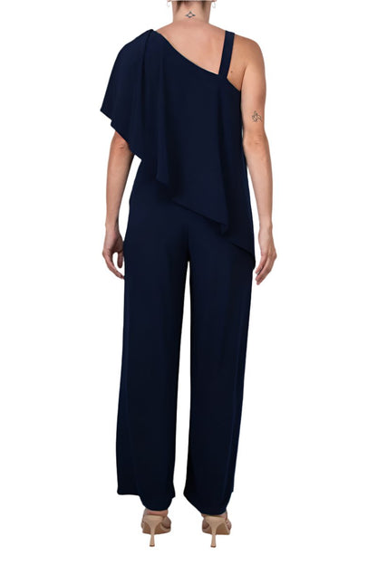 This chic one-shoulder jumpsuit features an asymmetrical neck, short flutter sleeves, and wide-leg pants, creating an elegant and modern silhouette. The wholesale Marina jumpsuit alternative offers a stylish jumpsuit design perfect for special occasions.